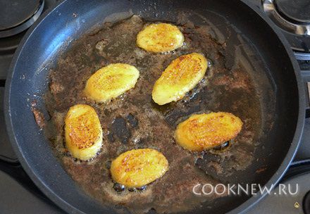 На сковороде растопить сливочное масло, посыпать сахаром, довести на среднем огне до легкого коричневатого цвета.
