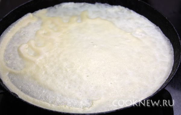 Испечь тонкие блинчики, поджаривая только с одной стороны