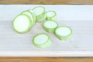 Кабачок хорошо помыть и порезать кольцами толщиной около 1 см