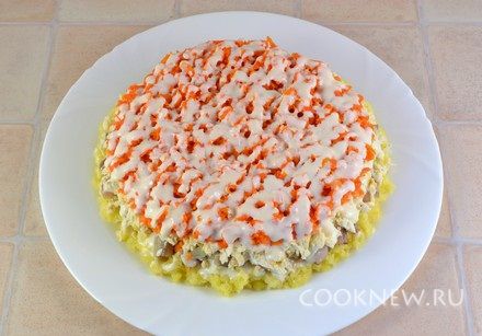 Выложить свеклу, полить майонезом и поставить настаиваться на 3-4 часа
