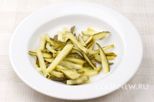 Затем идут солёные огурцы — после каждой закладки нового ингредиента суп доводим до кипения