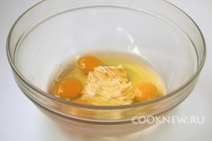 К мягкому маслу добавить яйца