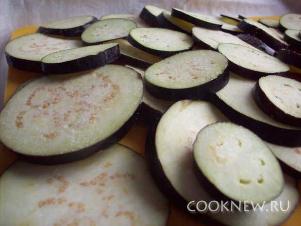 Баклажаны режем кружками,солим и оставляем на 20 минут.