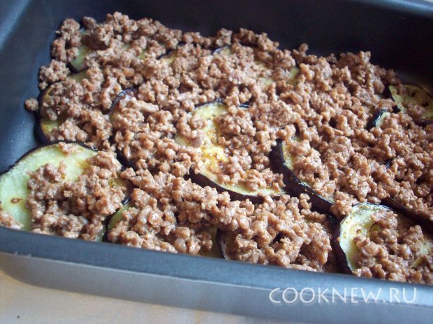 Фарш обжариваем, добавляя к нему 1 столовую ложку томатной пасты, солим, перчим по вкусу.