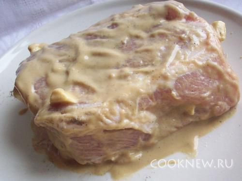 Смазываем обильно горчицей и оставляем на пару часов в холодном месте.